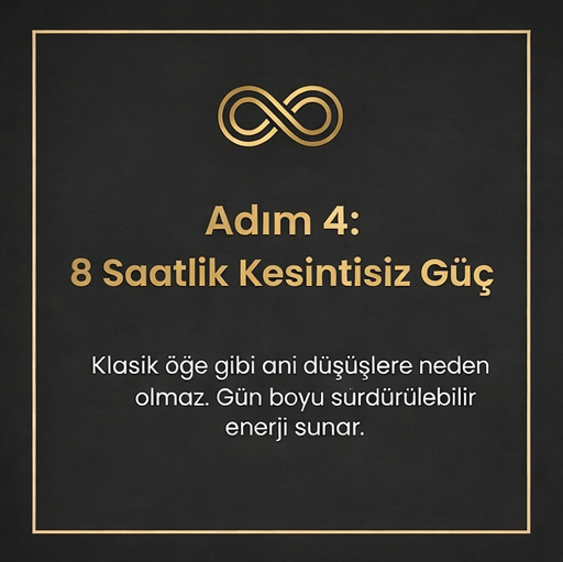 Formülümüzdeki L-Theanine, kafeinin yan etkileri olan anksiyete ve çarpıntıyı bloke eder. Bu sayede “uyanık ama sakin” (Calm Alertness) bir zihin durumuna geçersiniz.